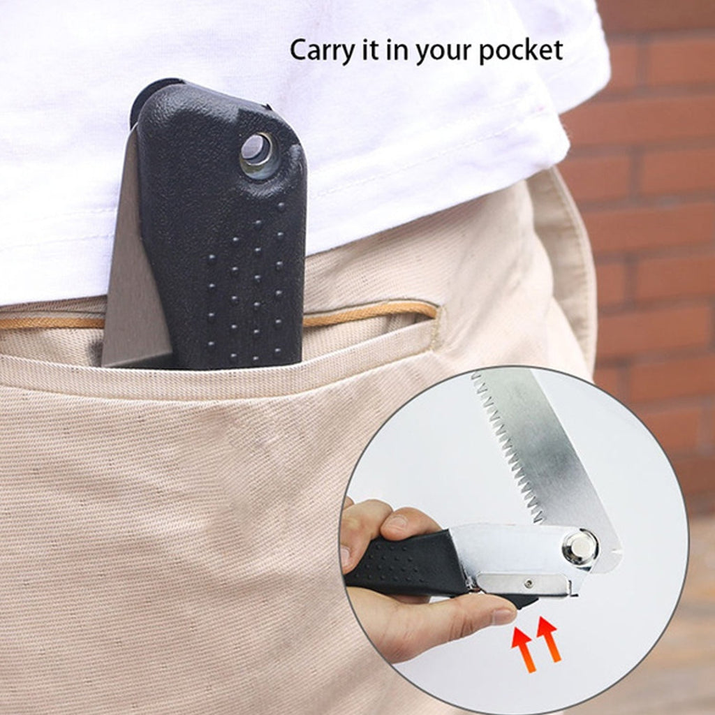 Sharp to cut the twigs, branches, bushes, shrubs and trees. Triple-cut razor teeth hardened to stay sharp for smooth and fast sawing Good-quality slip-resistant, comfort grip handle, comfortable and easy for cutting wood, effective to increase working efficiency. When folded and not in use, the compact saw easily fits in your pocket or toolbox Waterproof and rustproof, easy to clean with water, durable for long-lasting use.